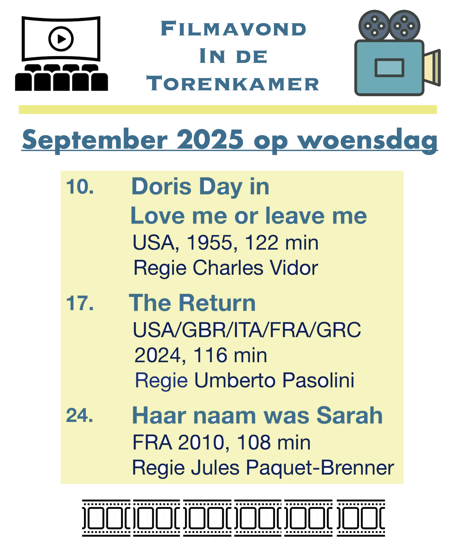 Filmavond in de Torenkamer, 13 september 19.30 uur, inloop vanaf 19.15 uur, entree 2 akro's.