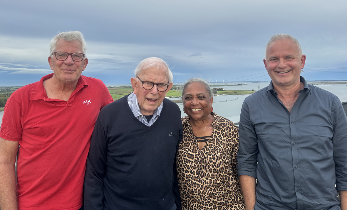 V.l.n.r: Ben Kremer (secretaris),Theo Kothuis (penningmeester), Ivy George (algemeen bestuurslid/vice-voorzitter) en Yko Buursma (voorzitter).